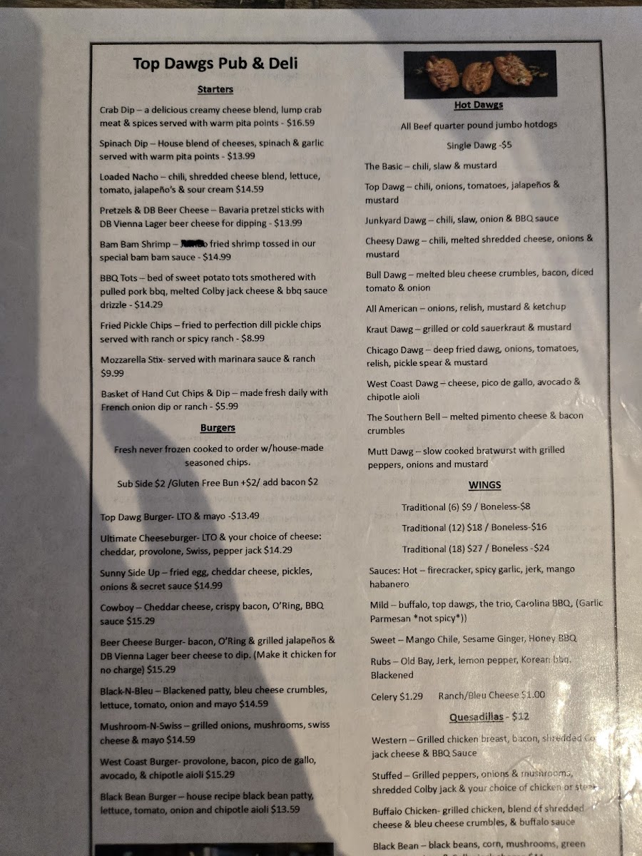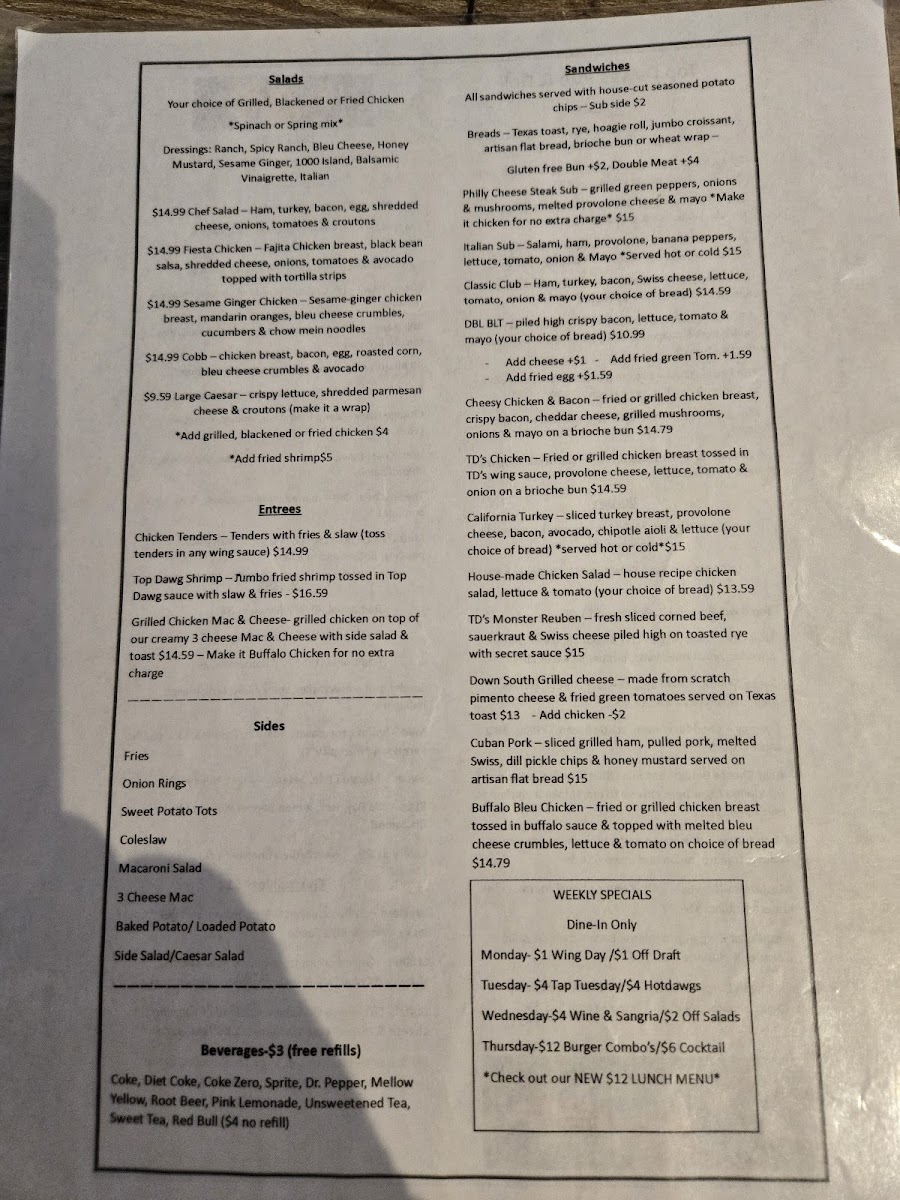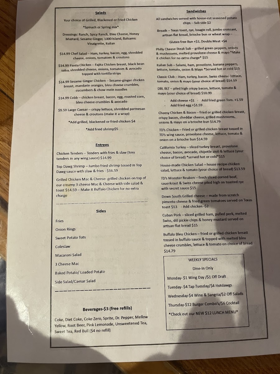 Welcome to Top Dawgs Pub & Deli, a local gem nestled in Roanoke, VA. This lively spot is known for its wide-ranging menu that offers something for everyone. Begin with their sensational wings available in various flavors; customers rave about the sesame ginger and the trio. For those craving hearty wraps, the Chicken Caesar and Buffalo Chicken Wraps stand out, boasting fresh ingredients and robust flavors, all priced at a wallet-friendly $15.75.