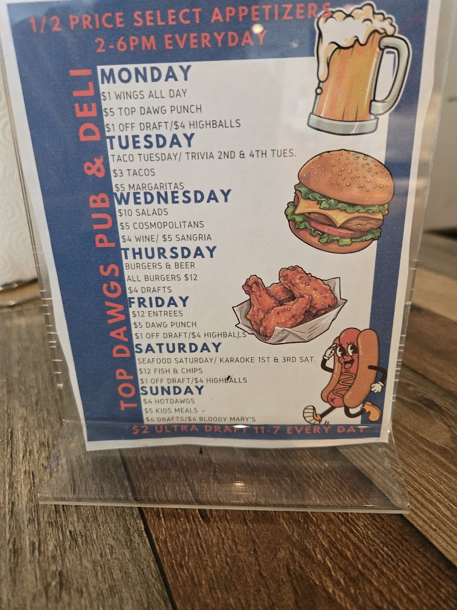 Don’t overlook the fan-favorite hot dogs, loaded with toppings and cooked to crispy perfection. Pair your meal with delightful appetizers like onion dip or bbq tots. And before you leave, indulge in a sweet treat; the fried Oreos and chocolate cake are not to be missed. With friendly staff and a charming, dog-themed atmosphere, Top Dawgs Pub & Deli truly delivers a delightful dining experience.